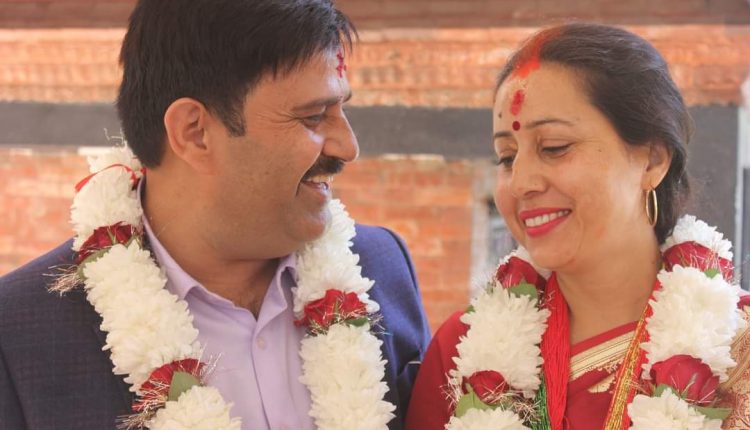 फेसबुकमामा लामो सन्देश राख्दै भनेका छन्, ‘सम्पुर्णं आफन्त, साथी तथा शुभचिन्तकहरुलाई यो सुखद जानकारी गराउँछौँ कि हामीले आज मिति २०७८ साल असोज २५ गते सोमबार बिहान डोलेश्वर महादेवकाे दर्शन गर्यौँ । त्यसपछि परिवारको उपस्थितिमा त्यहीँ विवाह सम्पन्न गर्यौँ । अनि, सपरिवार मानवसेवा आश्रम (कौशलटार)मा रहेका बुवाआमालाई खाना खुवाएर/खाएर विवाह सम्पन्न गरेका छौँ । परिस्थिति सिर्जित हाम्रो यो नयाँ अध्यायलाई शुभकामना र आशीर्वाद प्रदान गर्ने सबैलाई धन्यवाद ।’