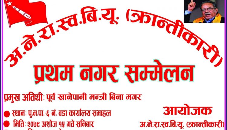 पुनर्वासमा अनेरास्ववियु (क्रान्तिकारी)को प्रथम नगर सम्मेलन आयोजना हुने