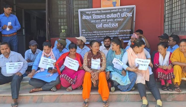 पुनर्वासका सामुदायिक विद्यालयमा कार्यरत कर्मचारी आन्दोलित
