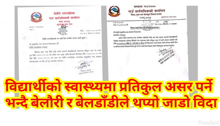 विद्यार्थीको स्वास्थ्यमा प्रतिकुल असर पर्ने भन्दै बेलौरी र बेलडाँडीले थप्यो जाडो विदा
